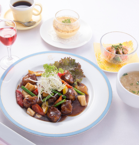 すべての料理に黒酢「桷志田」を使った限定ランチコースや黒酢ドリンク、またご好評をいただいております慶弔仕出し等の各種お弁当がご賞味いただけます。