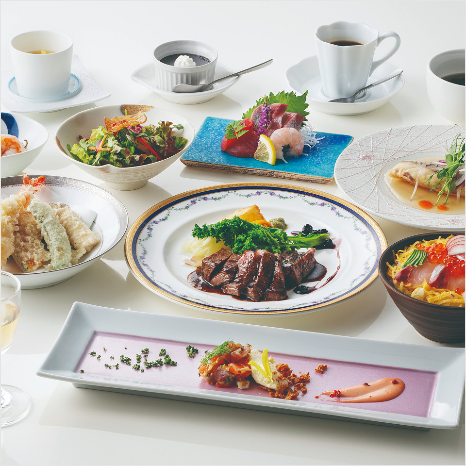 食前酢/オードブル/彩り造り/小鉢/魚料理/肉料理/替り鉢/サラダ/ご飯/スープ/デザート/コーヒー