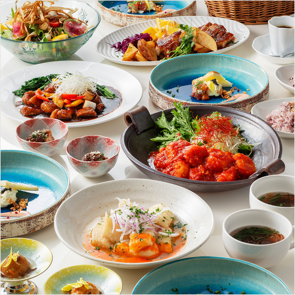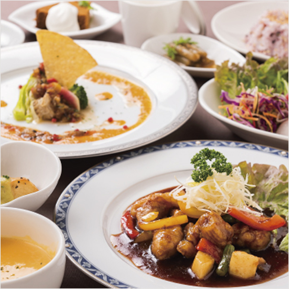 食前酢/オードブル/小鉢/魚料理/肉料理/サラダ/ご飯/スープ/デザート/コーヒー